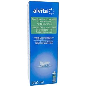 Alvita Soluzione Unica per Lenti a Contatto con Acido Ialuronico 500 ml - Detergente, Disinfettante e Idratante