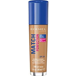 Rimmel London Match Perfection Foundation - Fondotinta Liquido Pelle Perfetta e Levigata a Lunga Tenuta con SPF 20 - Soft Beige - 30 ml