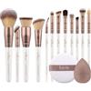 Luvia Cosmetics Set di Pennelli Prime Vegan - 15 Pennelli Professionali con Spazzola per Ciglia e Custodia in Raso