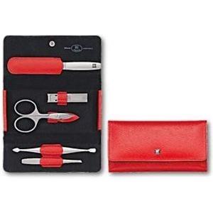ZWILLING Set Manicure e Pedicure Premium 5 Pezzi con Astuccio a Pressione in Nappa, Forbici per Unghie e Cuticole, Colore Rosso