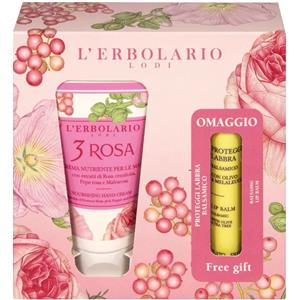 L'Erbolario Cofanetto 3 Rosa: Crema Mani Nutriente 75 ml e Balsamo Labbra in Omaggio