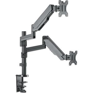 Manhattan 461597 Supporto da Scrivania Doppio Monitor 17-32'' con Molla a Gas - Nero, Supporta Monitor Fino a 8 kg, Compatibile VESA 75x75 e 100x100