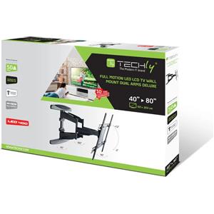 Techly Supporto a Muro Ultra Slim per TV LED LCD 40-80'' Full Motion Nero - ICA-PLB 172L / 308886, VESA fino a 600x400mm, Max 50kg