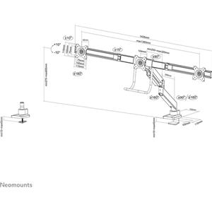 Neomounts DS60-425BL2 Supporto da Scrivania Full Motion per Due Schermi 17-27" - Capacità 8 kg per Schermo - Nero