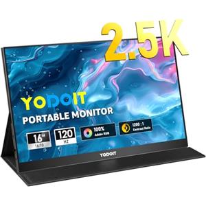 Yodoit Monitor Portatile 16" 2,5K QHD 120Hz IPS con USB Tipo C e Altoparlanti Integrati