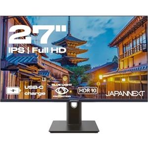 JAPANNEXT Monitor 27 IPS Full HD 1920x1080 con HDR, Ricarica USB-C 65W, Altezza e Inclinazione Regolabili, Altoparlanti, G-Sync/FreeSync