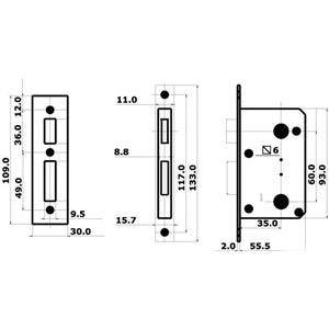 Osculati Serratura YALE Destra Interna 94x57x11,5 mm per porte 16/38 mm