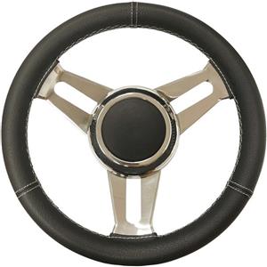 Osculati Volante in Pelle Nera Ø 350 mm con Razze in Acciaio Inox Lucida a Specchio