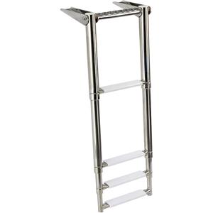 Osculati Scaletta Telescopica per Plancetta 4 Gradini in Acciaio Inox con Gradini Ovali e Pedana in Plastica Bianca