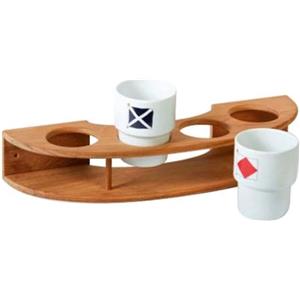 Osculati Porta Tazze 3 Posti in Teak con Vaschetta Rimuovibile - Misure 295x100x90 mm