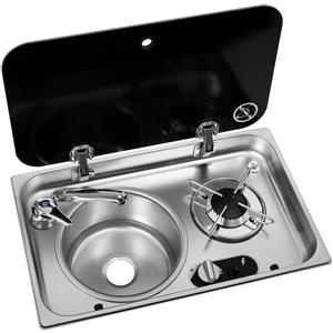 Osculati Fornello Ribaltabile 1 Fuoco con Lavello Rettangolare in Acciaio Inox con Rubinetto Pieghevole e Coperchio in Vetro Temperato