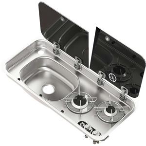 Osculati Piano Cottura 2 Fuochi con Lavello DX e Miscelatore in Acciaio Inox e Vetro Temperato in Nautica