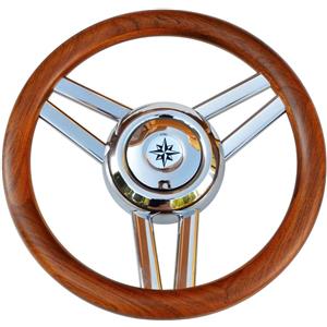 Osculati Volante A Inox/Teak 350 mm con Razze in Acciaio Inox e Cono Universale