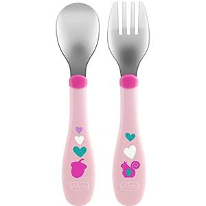Chicco Posatine Inox 18M+, Posate Bambini, Set Pappa, Forchetta e Cucchiaio per Bambini, in Acciaio Inossidabile, Facili da Impugnare, Set Svezzamento Prima Pappa, 2 Pezzi, Rosa