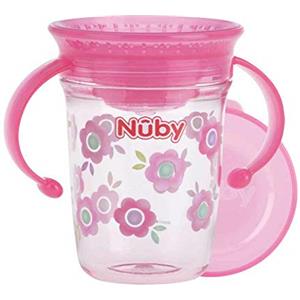 Nuby Tazza 360° Wonder Cup in Tritan Rosa 240 ml con Manici - 6 mesi