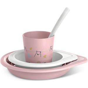 Suavinex My Family Set Svezzamento Rosa - Set Pappa 6M con Piatto, Ciotola, Bicchiere e Cucchiaio Ergonomico