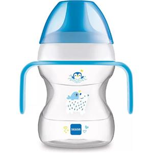 MAM Learn to Drink Cup Tazza bambini 190 ml, Biberon acqua e latte per neonati 6+ mesi con beccuccio anti-goccia e valvola per flusso libero, Borraccia neonato con pratici manici antiscivolo, Azzurro