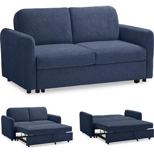 EVERGREENWEB Divano Letto 2 Posti Matrimoniale NELLY - L165xP90xA80 cm, Tessuto Blu, Schienale Reclinabile, Chaise Longue Estraibile