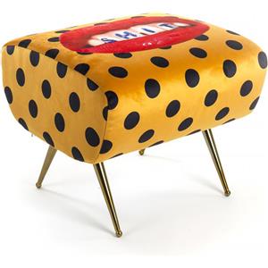 SELETTI Pouf Shit 16103 - Pouf imbottito con stampa a pois neri e labbra rosse, dimensioni 51x46x42 cm