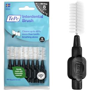TePe Scovolino TePe, Original, Nero, 1.5mm/ISO 8, 8pz, rimozione placca, pulizia interdentale efficace, filo interdentale, per spazi molto larghi