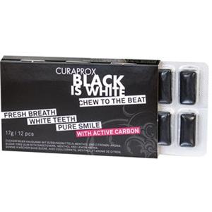 Curaprox Black Is White - Gomma da Masticare con Carbone Attivo, Aroma di Menta e Limone, 12 Pezzi