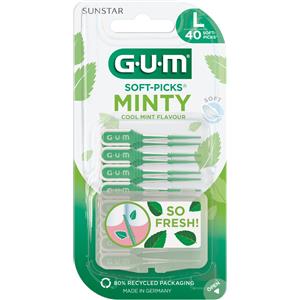 GUM SOFT-PICKS MINTY Scovolini in gomma al fresco sapore di menta | Pulizia dei denti e rimozione della placca | Misura L | Multipack 3x40 (con 1 campione omaggio)