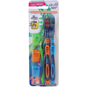 Idrofil Spazzolino Tris con Setole Medie - Set di 3 Pezzi in Diverse Combinazioni di Colore