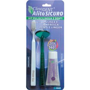 FIMO Srl Clinodent Kit Puliscilingua e Denti Alito Sicuro - Spazzolino, Puliscilingua e Gel Dentifricio