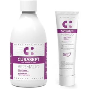 Generico Kit Biosmalto Denti Sensibili Curasept | Dentifricio 75 ml + Collutorio 300 ml | Protezione Smalto, Remineralizzazione e Sollievo dalla Sensibilità