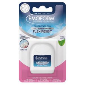 EMOFORM Filo Interdentale Flexiresist 30m - Super Resistente, Fibra Elastica, Ideale per Spazi Stretti