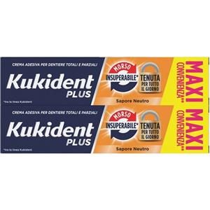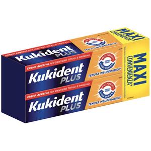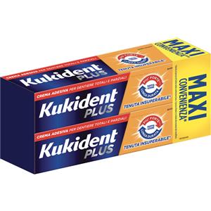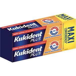 Kukident Plus Doppia Azione MAXI Crema Adesiva Dentiere Totali Parziali, 2x65g 984360331