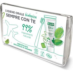 GUM Travel Kit Bio: Spazzolino Pieghevole, Dentifricio Bio Fresh Mint 12 ml e Scovolino Interdentale