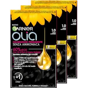 Garnier 3x Garnier Olia Midnight Colorazione Capelli Tinta Permanente Colore 1.0 Nero Intenso Senza Ammoniaca Fragranza Delicata - 3 Tinte