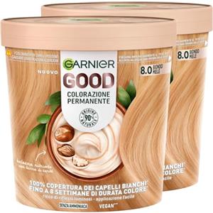 Garnier Good Tinta Colorazione Permanente Fino a 8 Settimane Colore Brillante e Luminoso Copre il 100% dei Capelli Bianchi Formula Vegana Senza Ammoniaca 8.0 Biondo Miele - 2 Confezioni