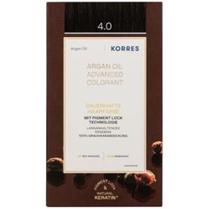 Korres Argan Oil - Tintura per capelli senza ammoniaca 50 ml, Marrone 4.0, 100% copertura capelli bianchi, vegano con olio di argan e cheratina