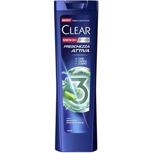 CLEAR MEN Freschezza Attiva 3in1 Shampoo Antiforfora, Balsamo e Doccia Schiuma con Mentolo - 225ml