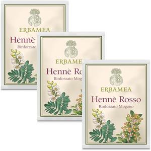 Generic 3x Erbamea - Hennè ROSSO RINFORZATO MOGANO - Busta da 100 gr - A base di polvere di Lawsonia inermis e Cassia Italica - Pacchetto da 3 buste da 100 gr l'una + in OMAGGIO 2 Tisane Funzionali Viropa