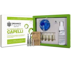 Organics Pharm Kit Riequilibrante Capelli - 6 Fiale Lozione Shampoo 150ml Spazzola per Massaggio