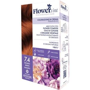 Purobio Flowertint Colorazione in Crema Permanente 7,4 Biondo Medio Ramato - Lunga Durata e Ottima Copertura