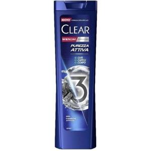 CLEAR Men Shampoo 3in1 Antiforfora Purezza Attiva 225ml - Detergente e Idratante con Carbone Attivo