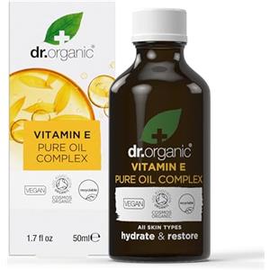 Dr Organic Olio Puro alla Vitamina E 50ml - Idratante, Lenitivo e Nutriente per Pelle Normale a Secca, Naturale e Biologico