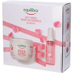Equilibra Kit Corpo Rosa Ialuronica Nutriente - Burro Corpo 300ml e Acqua Profumata 50ml con Acido Ialuronico