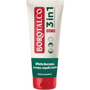 Borotalco Doccia Shampoo 3 in 1 Uomo - 200 ml, Detersione per Corpo, Capelli e Barba con Profumo Originale