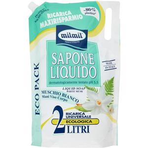 MIL MIL Sapone Liquido Sacco 2000 ml - Muschio Bianco, Delicato e Dermatologicamente Testato