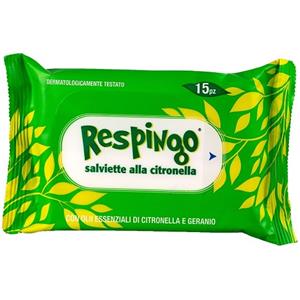 Respingo Salviette Citronella 15 Pezzi - Con Oli Essenziali di Citronella e Geranio, Dermatologicamente Testato