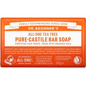 Dr. Bronner's Sapone Solido Bio Tea Tree 140 g - Con Olio di Tè Puro e Canapa, Ideale per Pelle Acneica