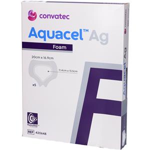Convatec Aquacel Ag Foam - Medicazione Asettica Sterile Adesiva in Schiuma di Poliuretano 20x17 cm, 5 Pezzi