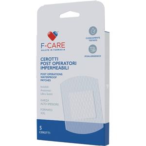 F-CARE Cerotti Post-Operatori Impermeabili 7,5x10 cm - 5 Pezzi, Trasparenti e Ultra Sottili