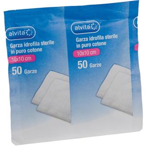 Alvita Garza Idrofila Sterile 10x10cm - 50 Pezzi, Puro Cotone Ipoallergenico per Medicazioni