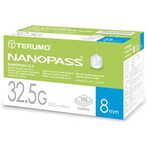 TERUMO NANOPASS Ago per Penna da Insulina 32,5G Lunghezza 8 mm 100 Pezzi - Sterile e in Acciaio Inox